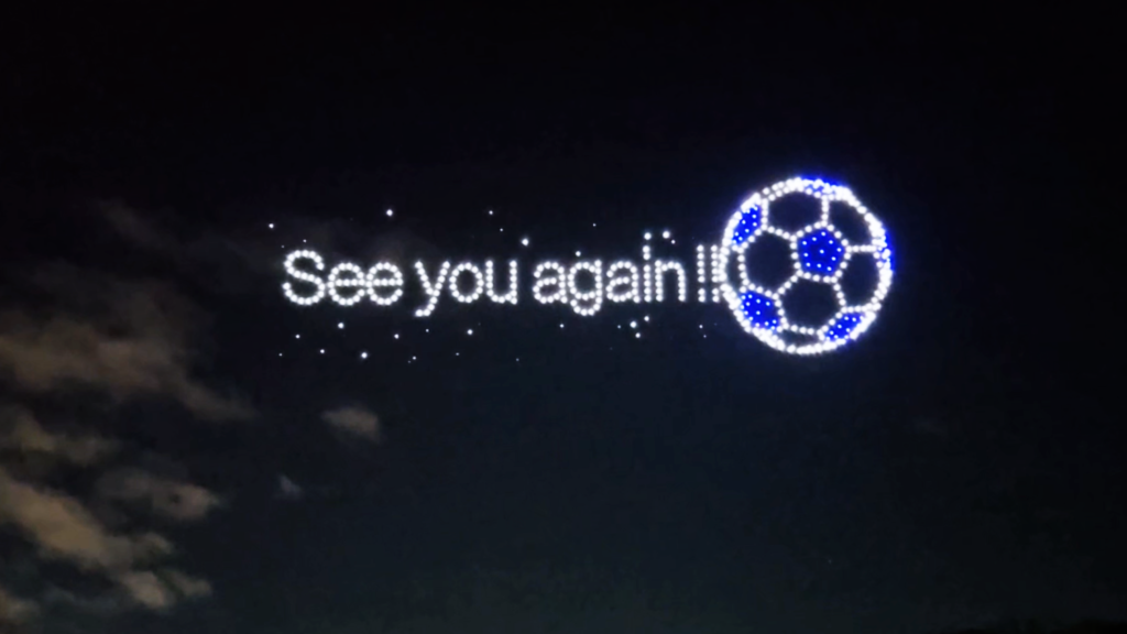 本イベントは、サッカー・音楽・テクノロジーが融合する新たなスポーツエンターテインメントとして開催され、フィナーレでは奈良県内最大級となる1,500機のドローンが夜空を舞いました。